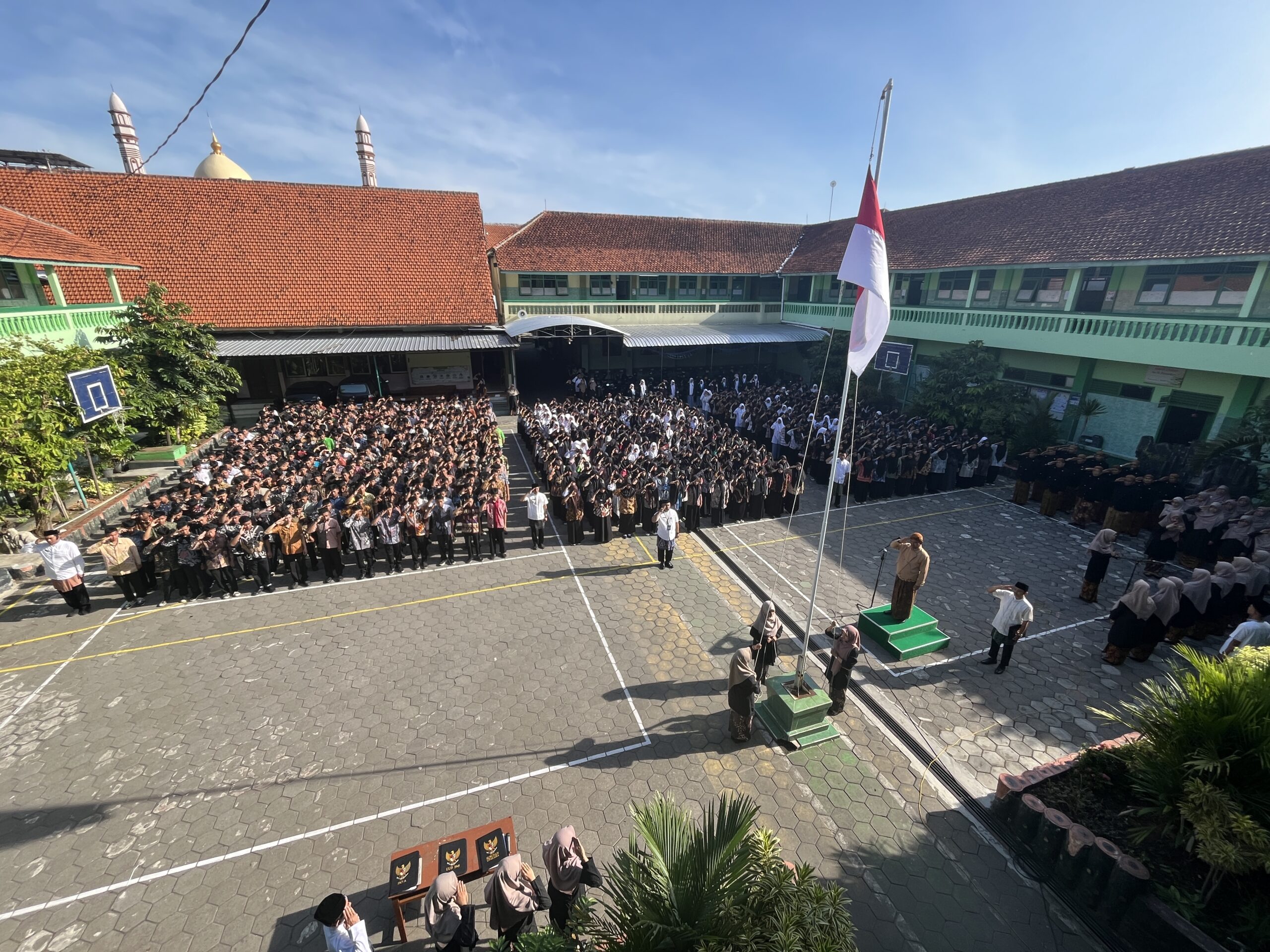Upacara di Kampus 1 berlangsung lancar dan penuh makna, diikuti oleh ratusan siswa, guru, serta staf tata usaha dengan tertib.